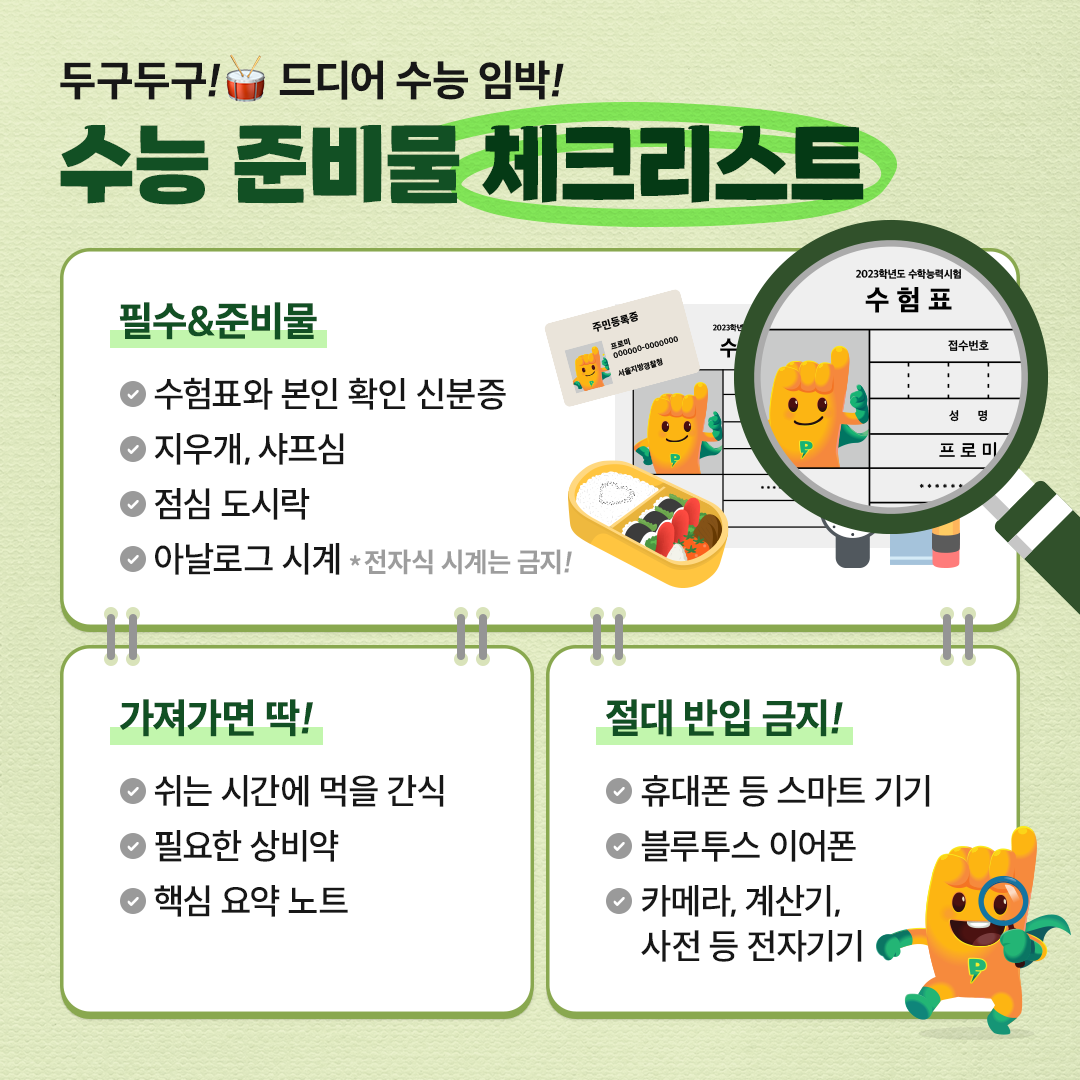 두구두구! 드디어 수능 임박! 수능 준비물 체크리스트